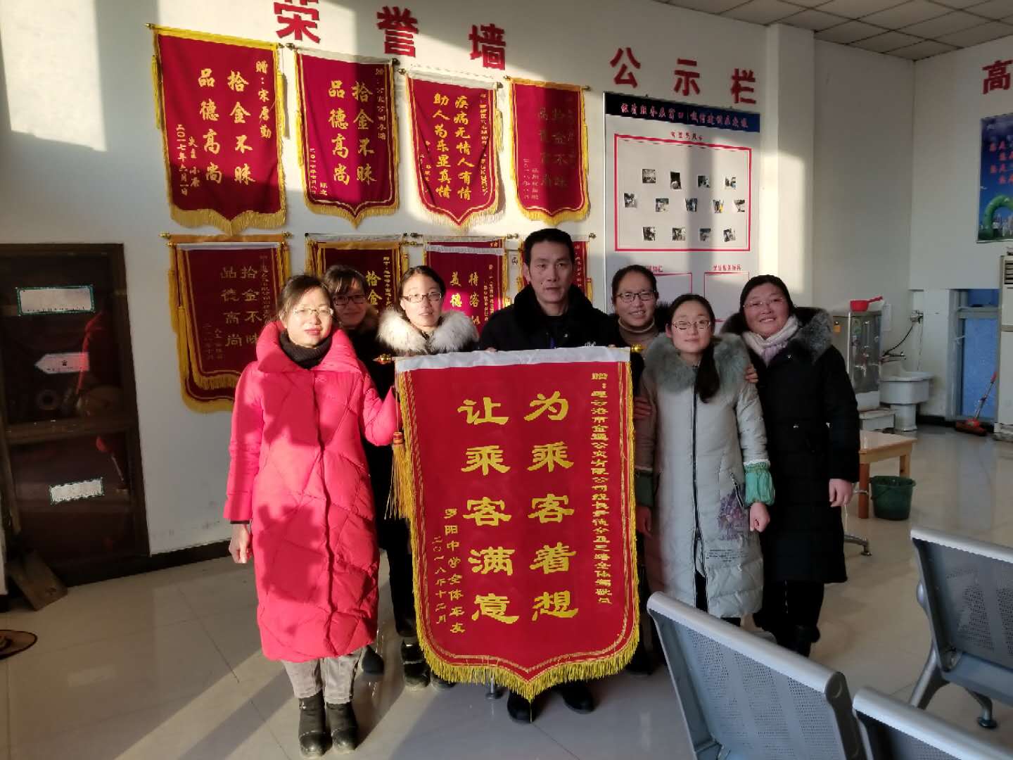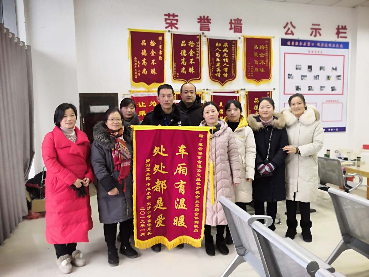 1月19日,赣榆金通公交公司驾驶员休息室门口鞭炮齐鸣,赣榆罗阳中心小学和罗阳中心卫生院部分代表一行,专程为赣榆城区3路公交全体驾驶员送上绣着“车厢有温暖,处处都是爱”的锦旗,感谢他们为市民出行所做出的努力,对他们周到的服务表达深深的谢意。